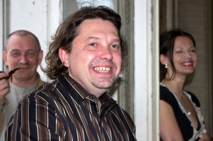 Ivan Malkovych with Victor Morozov, a legendary musician and translator, an honorable chevalier of the A-BA-BA-HA-LA-MA-HA Order, who came from Washington D.C. specially for “A-BA-BA-HA-LA-MA-HA’s” birthday